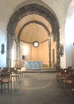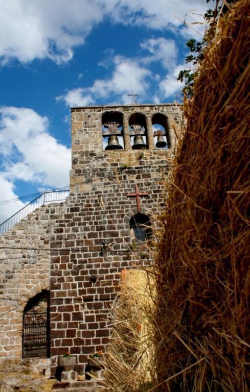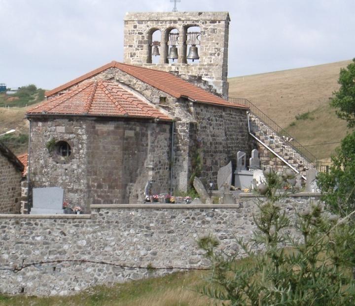 De petites dimensions, l'église Saint-Jean-Baptiste est construite en tuf volcanique et en granit. La façade ouest, prolongée par un clocher-peigne encore pourvu de ses trois belles cloches, est contrebutée par deux larges contreforts qui lui donnent une forme trapézoïdale peu commune.La nef unique est formée de trois travées, dont une travée de chœur plus courte. L'abside est polygonale, à l'intérieur comme à l'extérieur. Il faut enfin signaler, côté sud, la trace d'une porte murée.