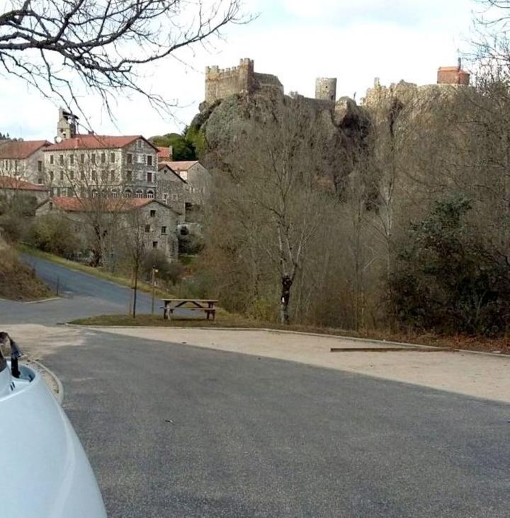 Parking spécial camping-car au fond du parking auto. Très joli endroit avec une vue sur Arlempdes qui est classé parmi "Un des plus beaux villages de France" et la Loire.