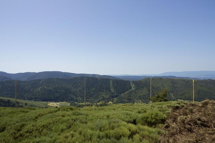 Lorsqu'elle se déploie à l'horizon, s'éloignant sur plusieurs plans qui se succèdent et où se mêlent sucs et massifs montagneux, la ligne de partage des eaux n'est lisible que par les géographes. Parce qu'elle donne à voir et à être vue, Gilles Clément, assisté de l'atelier de paysage IL Y A (Marion Soulairol et Vincent Prévost), a imaginé un dispositif de perception jouant sur l'optique.