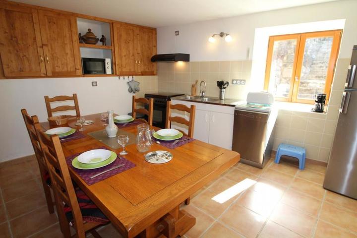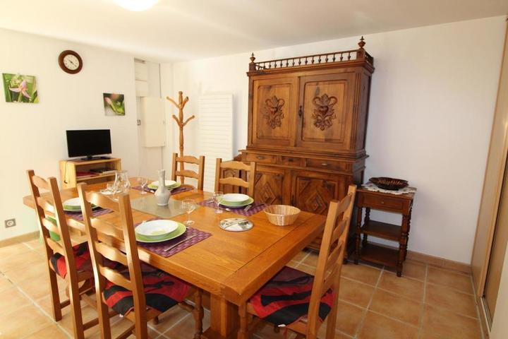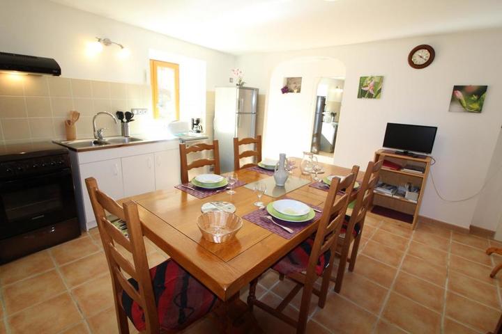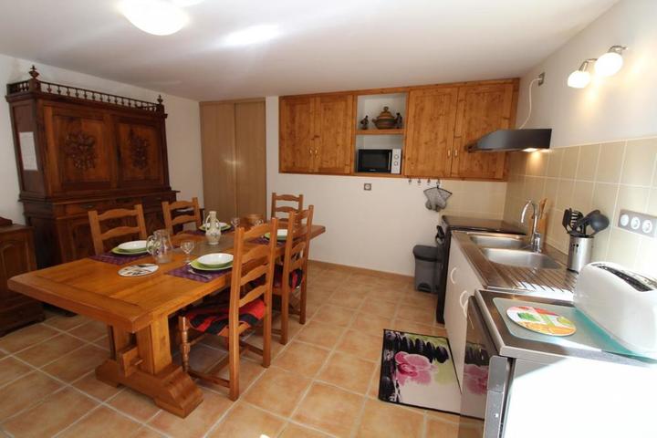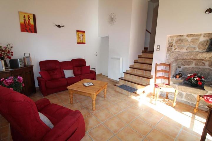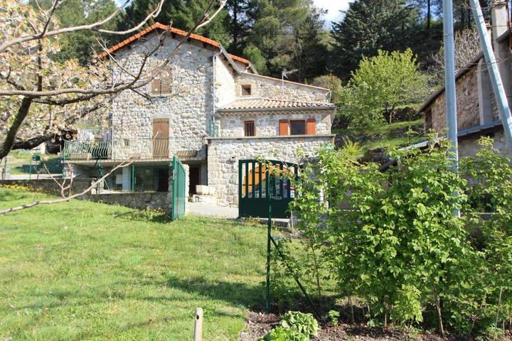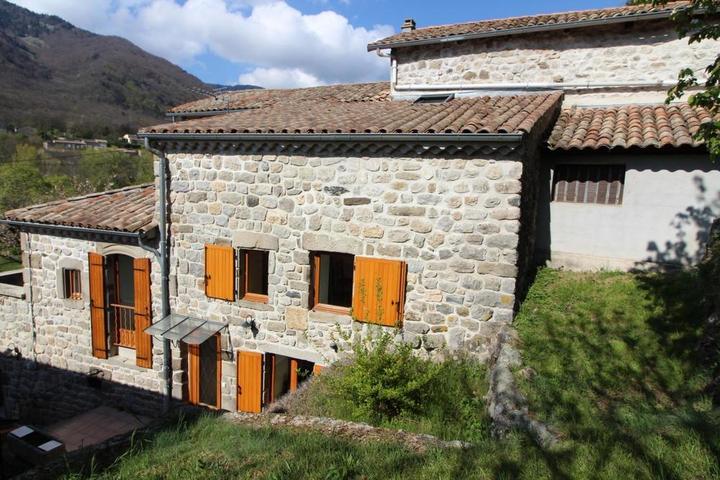 Salle à manger, cuisine équipée, salon avec canapé, fauteuil, TV écran plat, 1ch(1 lit 2 pers), 1ch enfant mansardée basse (2 lits 1 pers), s.d'eau, wc, ch.électr, petite terrasse plein sud 10m², cour, garage, terrain commun ombragé par le verger. Baignade et pêche sur place (petit plan d'eau du village aménagé au bout de la propriété). Station thermale, casino, cinéma à Vals les Bains, 15km. Réduction 10% sur séjour 3 semaines.