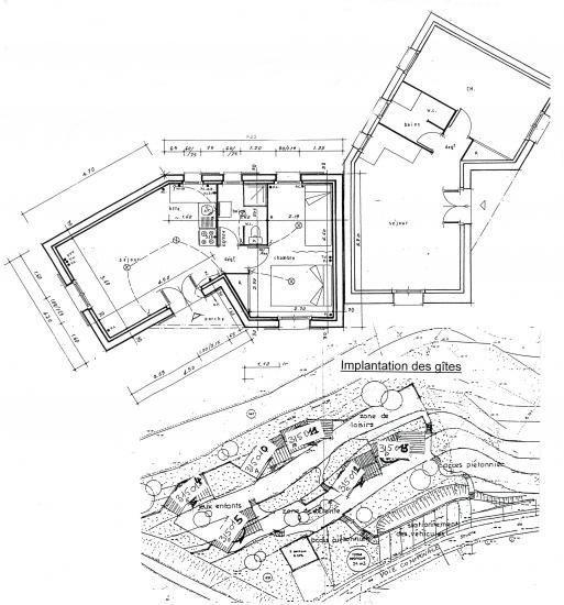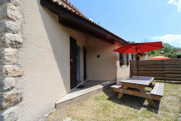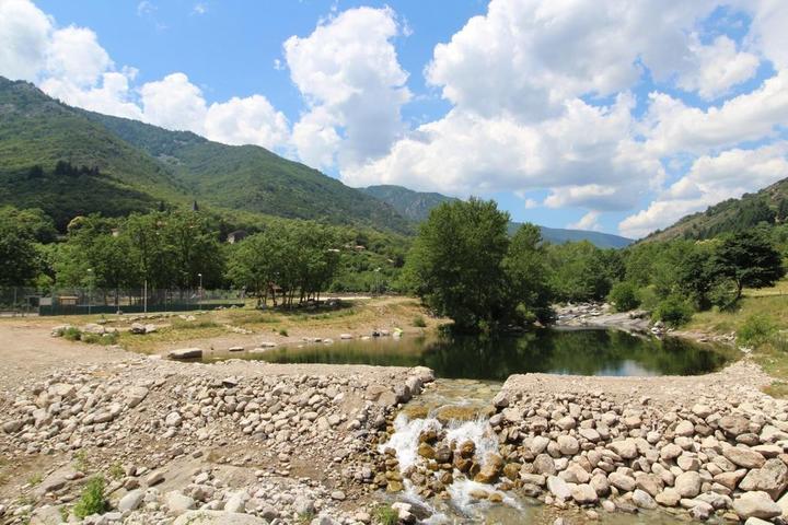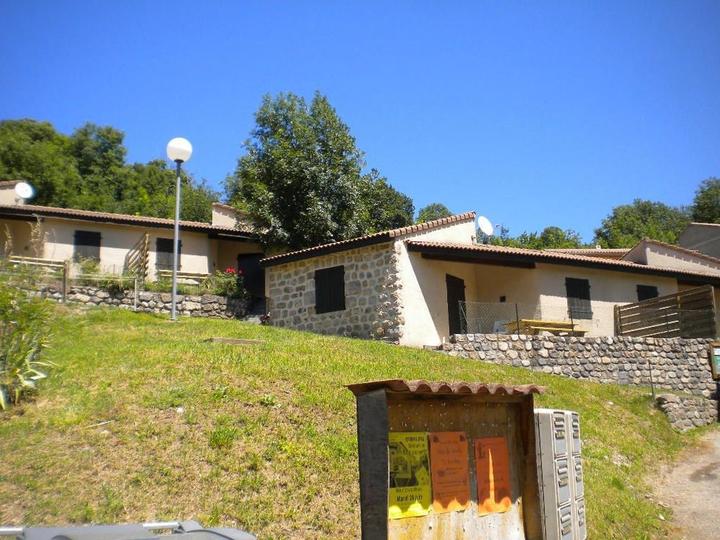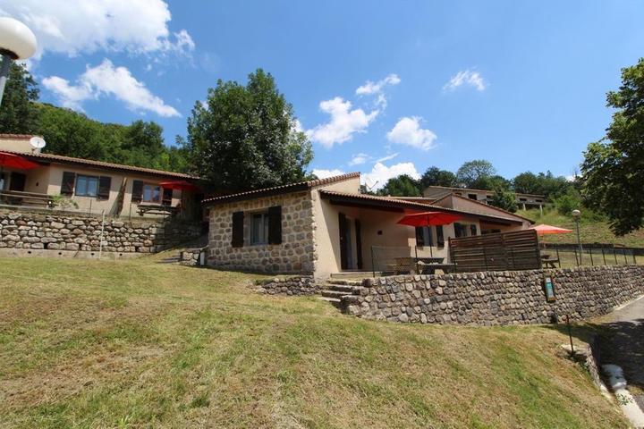 6 properties in gîte village in peaceful riverside setting on sunny slopes of the Tanargue in the Hautes Cévennes. Each gîte has private outdoor area. 3rd gîte: living room, fitted kitchen area, bedroom (double bed), alcove communicating with main bedroom (2 single bunks), shower room/WC. Electric heating. Vals-les-Bains (spa town, casino, cinema) and Neyrac-les-Bains 15 min. Cleaning deposit: 100€.