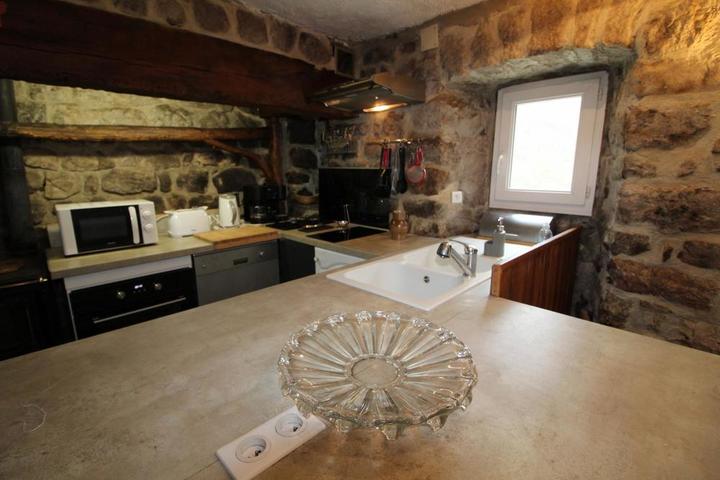 Cuisine, séjour avec coin salon (grande baie vitrée ouvrant sur la vallée), cuisine bien équipée, WC. A l'étage : 1 chambre (1 lit 180), 1 chambre enfant équipée de 2 lits en 90 en étage, salle d'eau et WC. Buanderie avec lave-linge et sèche-linge commun avec le 1er gite. Gerbier des Joncs à 20 km , station thermale de Vals les Bains à 25 km.