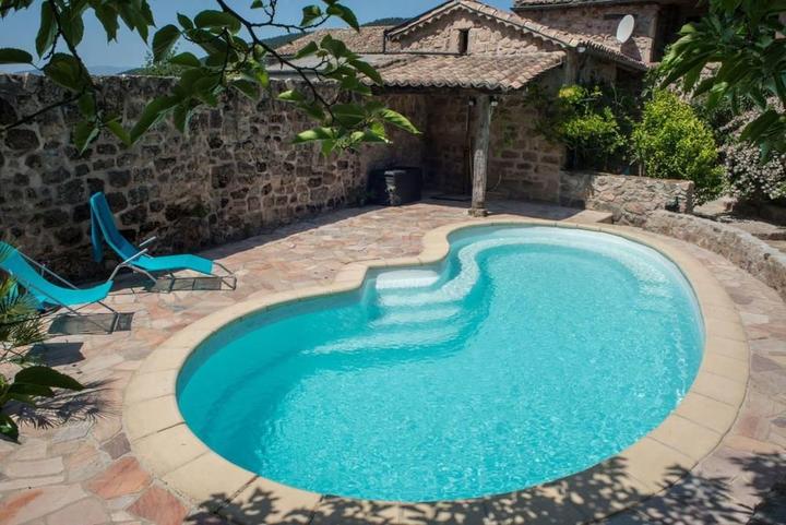 This beautiful and roomy stone house typical of the local construction has all the charm and comfort for a successful holiday.Away from the bustle, in the village of Planzolles, it is located only 5 minutes away from shops and a lively market on sundays.The spacious home, the pool and the garden are an invitation to relaxation and rest.In a 2000m² garden with a private pool, this 200m² house includes 5 bedrooms, 2 shower rooms, 1 vast living room/kitchen which opens on one of the terraces.It can comfortably accomodate 12 people all year long (2 sofabeds can be used as cots for extra people)