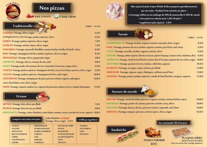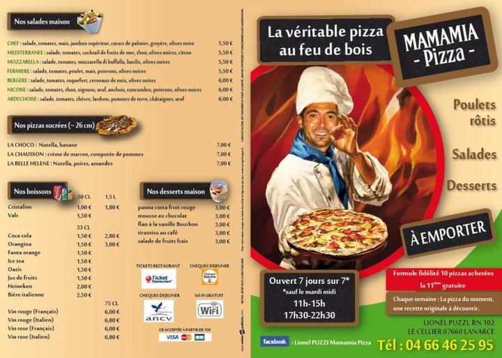 Nous vous proposons un choix très large de pizzas cuites au feu de bois ainsi que des salades et desserts. A emporter.
