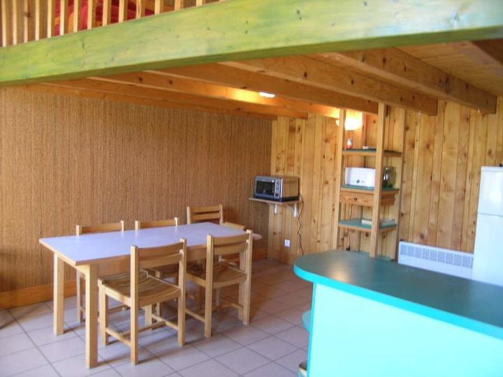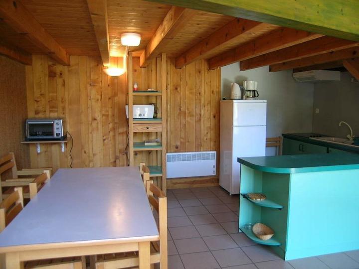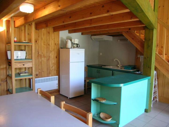 Séjour/c.cuisine, ch1 (1 lit 2 pers.), ch2 (2 lits 1 pers. superposés), 1 convertible 2 pers, salle d'eau, wc, four à pizza et terrain communs.