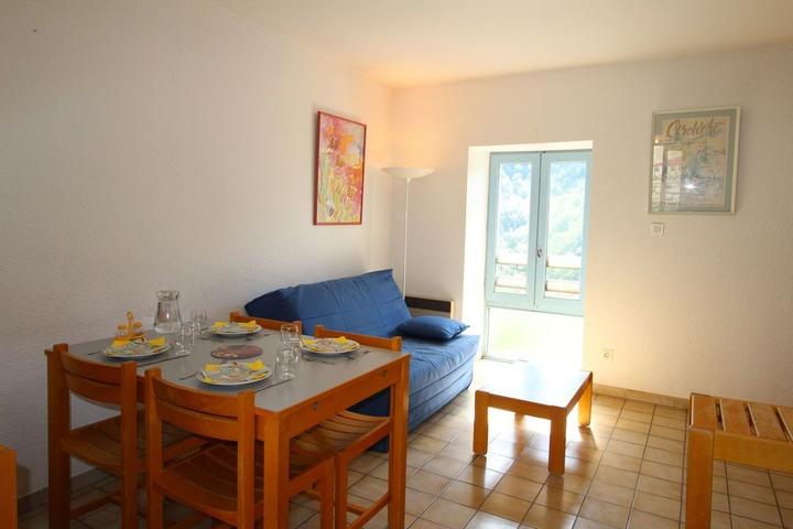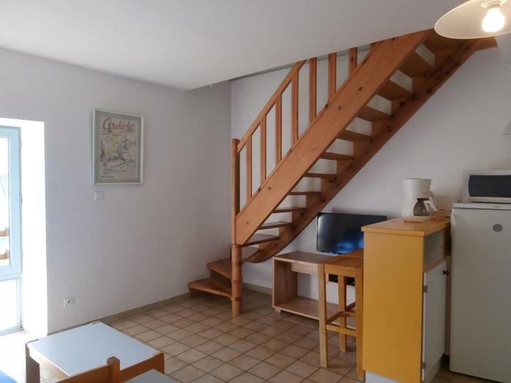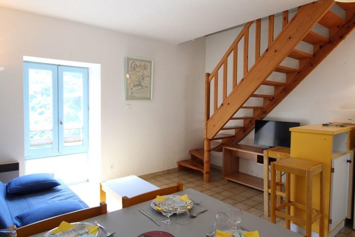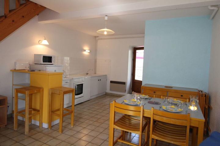 Séjour et coin cuisine, chambre 1 (1 lit 2 pers.), chambre 2 (2 lits superposés) , salon 1 convertible de 2 pers., salle d'eau, wc, chauffage électrique, four à pizza commun, petite cour commune. Commerces à 30 km.