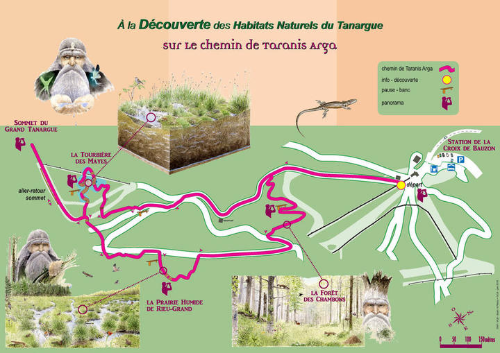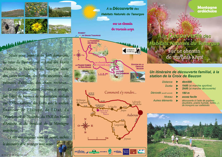 Le Dieu Taranis vous emmène découvrir son territoire le temps d'une balade entre forêt, lande et tourbière. Sentier de découverte familial conçu par le Parc Naturel Régional des Monts d'Ardèche et l'Office National des Forêts.