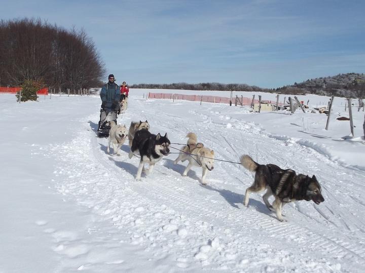 Sur le plateau Ardéchois, dans le magnifique cadre du Mont Gerbier de Jonc et du Mont Mézenc, venez découvrir l'univers des chiens de traîneau. Baptême en traineau, initiation à la conduite d'attelage, cani-rando, cani-trottinette...