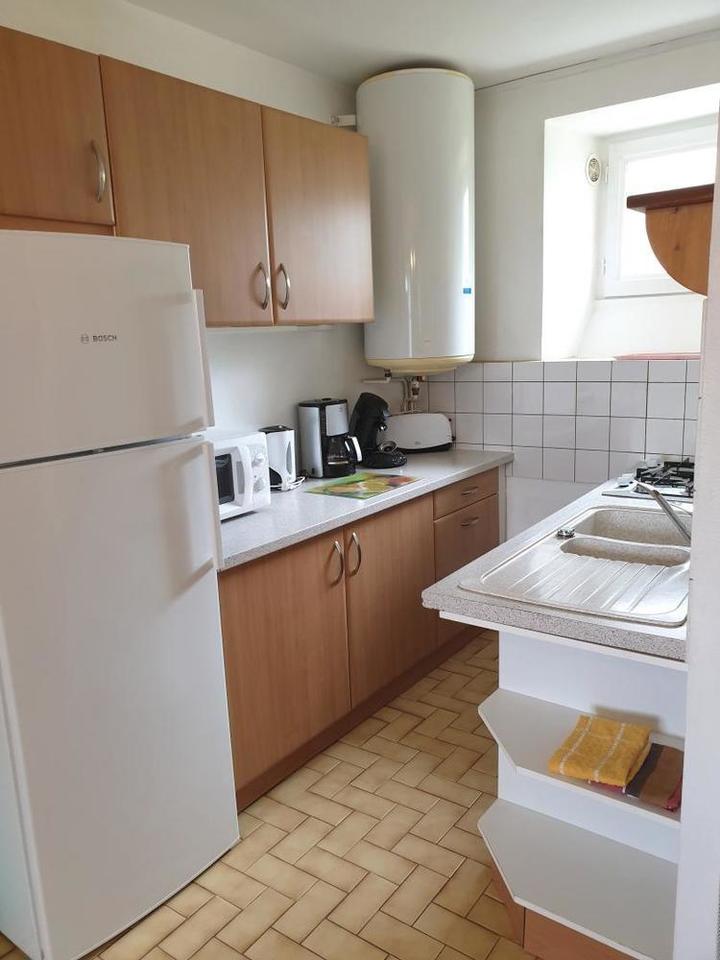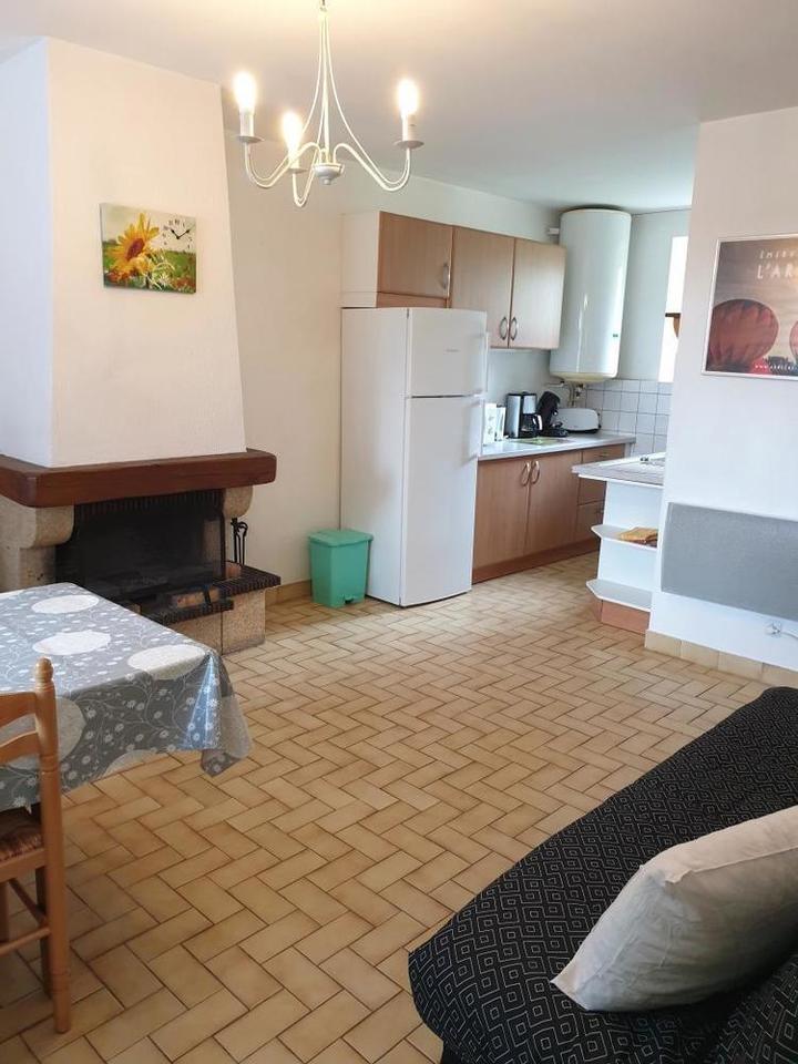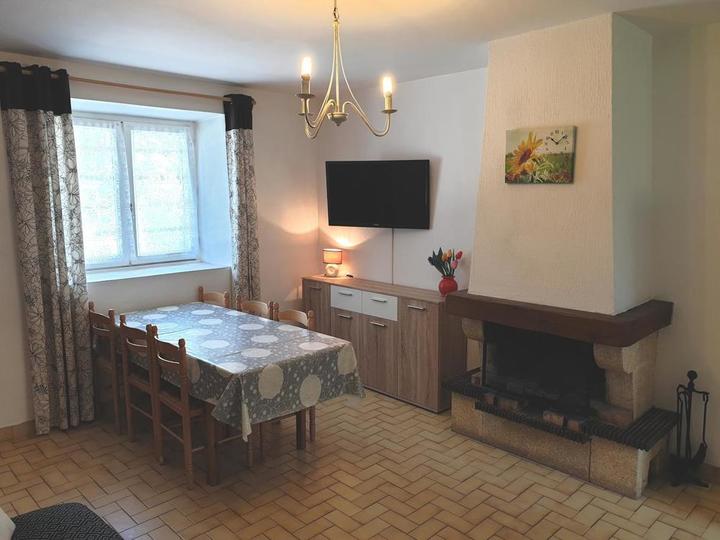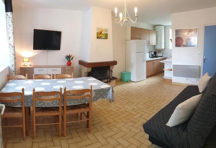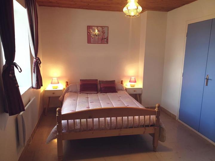 3ème gîte sur 2 niveaux : Au rez de chaussée : séjour, coin-cuisine, canapé, salle d'eau, wc. A l'étage : 3 ch(3 lits 2 pers.), lave-linge commun, cheminée (bois gratuit), chauffage électr., terrain commun non clos. Prise TV. Un seul