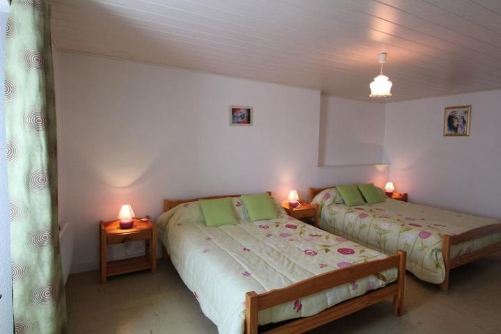 1er gîte, sur 2 niveaux : séjour/coin-cuisine, canapé, 2 ch. (2 lits 2 pers.),