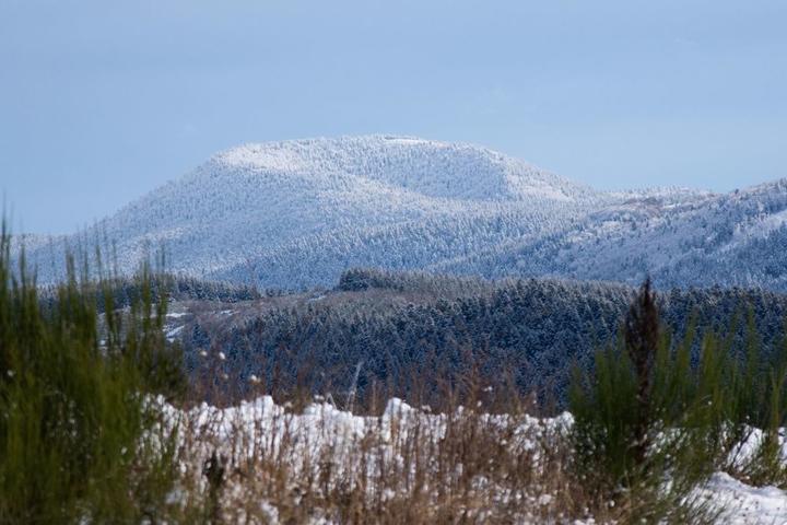 Le suc de Bauzon est un cône strombolien culminant à 1471m. Son sommet est partagé entre 4 communes: Le Roux, Montpezat, St Cirgues en Montagne, Usclades et Rieutord. Sa coulée, localement épaisse de 30-40m s'est épanchée dans le lit de la Loire sur 8km.